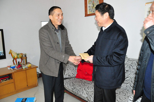 12月15日上午,市中级人民法院党组书记、院长孙同占在党组成员、梁园区人民法院院长王宝剑,党组成员、政治部主任王养庆等人的陪同下,来到梁园区平原街道办事处王井社区一个偏僻的居民区,看望慰问了这位基层法官的楷模——梁园区人民法院民一庭法官黄清培。在黄清培的家中,孙同占紧紧拉着黄清培的手,动情地说:“你确确实实是基层法院的老黄牛,是全市法院系统的代表,我为有你这样尽职尽责的好同志而骄傲,你是我们基层法官的楷模,是我们全市两级法院法官学习的榜样!”