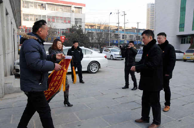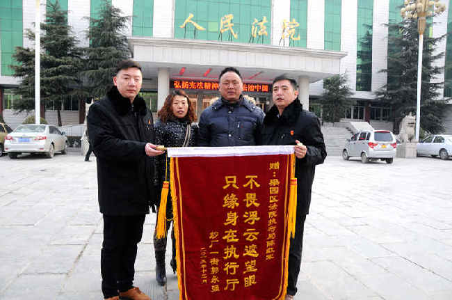 1月27日,一位申请人连夜赶制了一面锦旗,一大早就放着鞭炮送到法院,感谢执行干警冒着严寒帮他要回了执行款。
