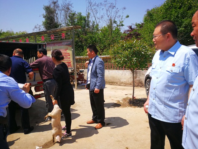 5月9日,河南省商丘市梁园区法院党组书记、院长王亚东带领干警来到观堂乡徐楼村,为5户困难群众家送去了小猪仔和小鸡,还带去了部分饲料和面粉。经过入户调查和认真研究,决定用推广和扶植困难群众开展养殖的办法,促进群众脱贫解困,活动受到广大群众的好评。