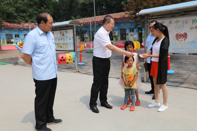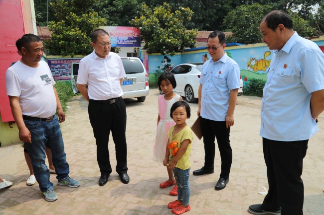 6月15日,河南省商丘市梁园区法院党组书记、院长王亚东带领扶贫工作队,再次走进观堂乡阮庄村,听取村两委会情况介绍,了解扶贫工作落实情况,查看具体帮扶资料,还来到观堂乡幼儿园,将帮扶对象常才友家中的两个儿童送到幼儿园,帮助交上入园学费3000元。