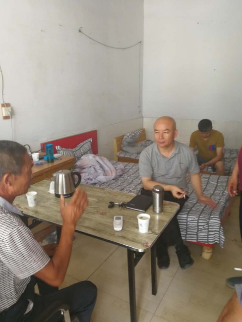 当日上午9点多,在阮庄村村委会,工作队和法官把老人的3个儿子召集在了一起,开始做调解工作。由于有前一次的赡养协议,并且老大已经履行了协议,所以做起工作来也确实不太容易。老大坚持父亲的事应有其他2兄弟赡养。为此,第一书记和法官从法律规定到老人思念大儿子的心情,从子女的义务再到左邻右居的看法等,耐心做起3兄弟的思想工作,从9点多一直持续到上午近12点,功夫不负苦心人,老大的心思终于发生了变化。他说:看到法官这么热的天一直说和这个事,我真不好意思再坚持自己的观点了,这样吧,老父亲的赡养问题我也参与了。