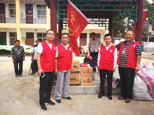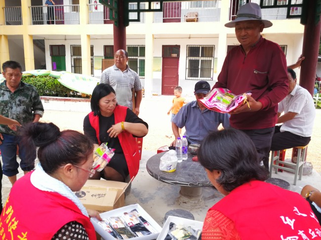 饭后,大家都集中在院中的小亭子边,义工们为每位老人送上了中秋的祝福,拿着月饼、毛巾、袜子,老人一个个竖起大母指表示感谢。随后,义工还将捐助的衣物委托敬老院根据需要分发。