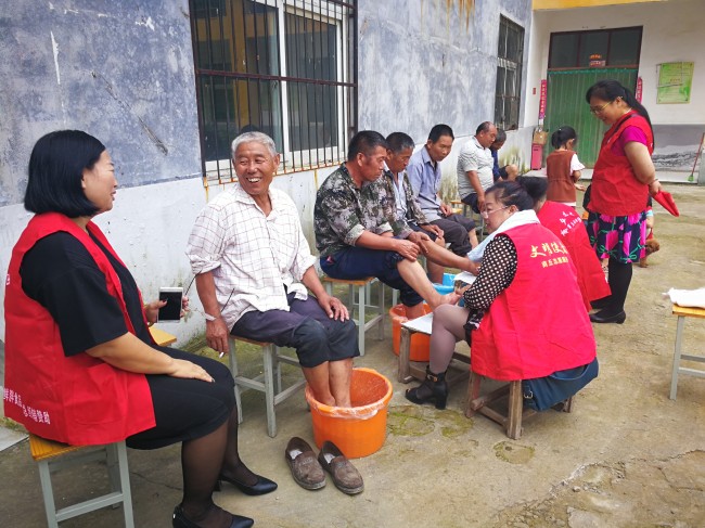 院子里,其他义工分别围座在老人身边,亲如一家地拉起了家常,文博按摩店的义工欧阳也开始为泡好脚的老人修脚。还别说,修脚还真是个技术活,厚厚的老茧和很久没有修过的脚指,平常人还真不知道该从哪里下手。但欧阳师徒俩手拿锋利的修脚刀,快捷准确地在老人的脚指前游走,一会儿就干净利落地完成了任务。还有个别老人总感觉让义工为他洗脚不好意思,最后还是义工们连接带劝才坐在的凳子上。问一问修过脚的10几位老人,都说农村人还真没享受过这待遇,感觉修过后很舒服。