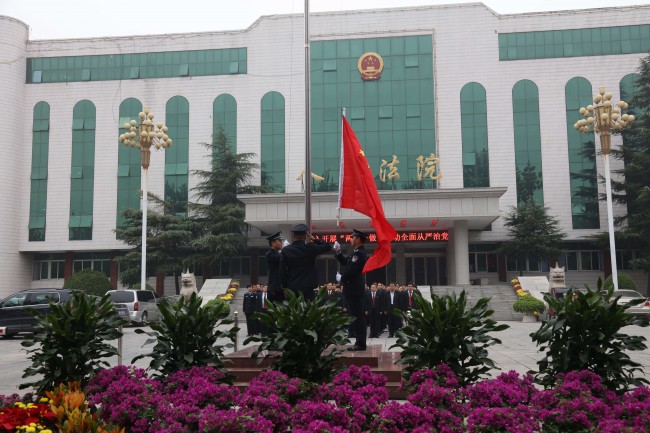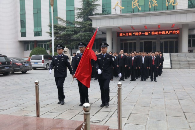 升旗仪式再次激发了干警的爱国主义热情,决心在以审判、执行工作中,不断增强“四个意识”,坚持司法为民,争做“两学一做”学习教育先锋,立足审判岗位,再创新的佳绩。