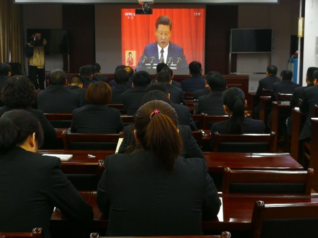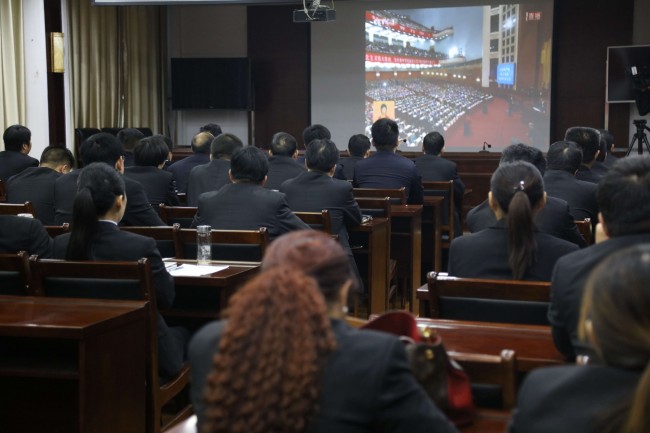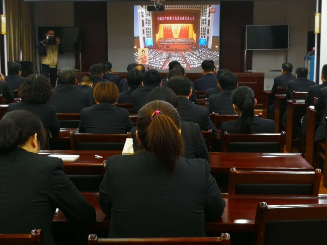 上午9时,干警准时汇集在视频会议室,集中收看十九大开幕式盛况。干警们在认真聆听了习近平总书记的报告后,现场响起雷鸣般的掌声。在随后组织的讨论中大家认为,中国特色社会主义事业已经上升到一个全新的发展阶段。习近平报告中把“实现人民群众对美好生活的向往”作为我们党的奋斗目标,标明注重以人为本,尊重人民权利,已经上升成为党中央和各级党委政府的执政理念。特别是近5年,中国人民的生活和精神面貌发生了可喜的变化,但在复杂的国际环境中,在中国崛起面临前所未有的各种压力和挑战,中国社会迫切需要更加紧密地团结在一起。十九大的胜利召开将进一步促进中国社会的团结和稳定;它的决策,将影响每一个中国人的生活。