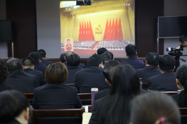 举世瞩目的中国共产党第十九次全国代表大会10月18日上午在北京隆重开幕。为及时了解、学习好十九大会议精神,河南省商丘市梁园区法院组织全体干警收看了十九大开幕式实况转播并认真组织了讨论。