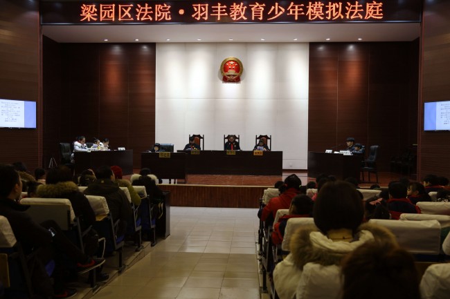 梁园区法院联合商丘羽丰教育工作室,面向全市少年儿童,以模拟法庭的形式,开展系列法制教育活动,取得了良好的社会效果。这次是第二次组织模拟法庭开庭,参加当天活动的有前进小学一年级二班的全体同学和羽丰教育工作室的全体学员,为了扩大宣传效果,还特意邀请学生家长参加了活动。