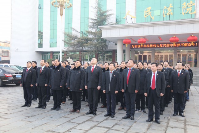 2月22日是2018年春节后第一个工作日,河南省商丘市梁园区法院干警迎着朝阳,举行了庄严的升国旗仪式,雄壮的国歌鼓舞干警在新的征程中继续勇往直前。