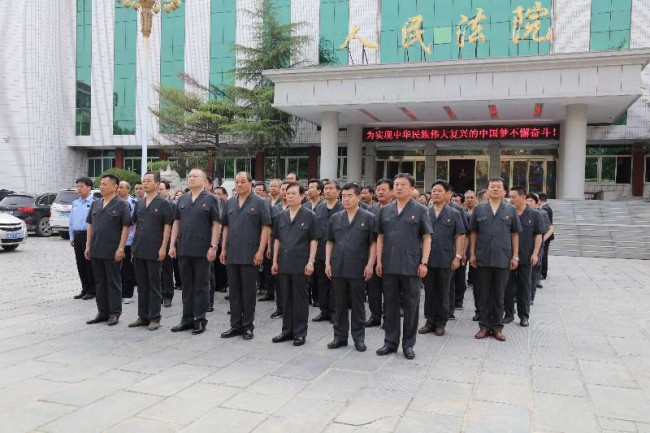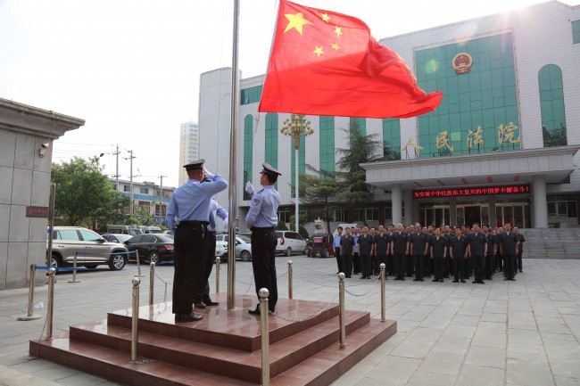 5月2日,河南省商丘市梁园区人民法院干警迎着朝阳,举行了庄严的升国旗仪式,以特殊的形式纪念“五一”劳动节。