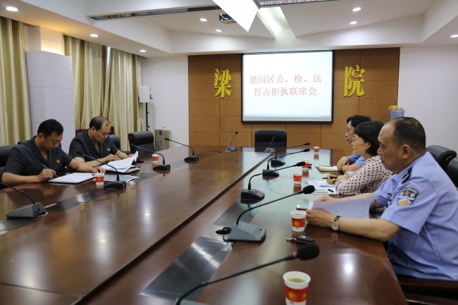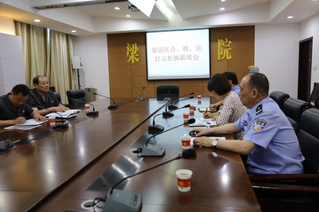为加强公检法之间的协作配合,强化对拒执行为打击力度、提升司法威慑力,6月7日下午,河南省商丘市梁园区人民法院、梁园区人民检察院、商丘市公安局平原分局在梁园区法院召开“合力攻坚执行难”联席会,学习全国打击拒执文件、研究联合打击拒执行为的措施。