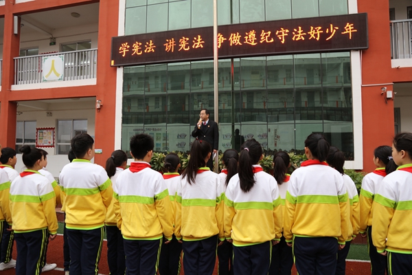 12月3日上午,梁园区法院副院长姜伟应邀参加辖区民一小学升国旗、普宪法活动,为全校千余名师生讲解宪法知识,赠送了《中华人民共和国宪法》单行本,并带领全体师生面向国旗宪法宣誓,活动受到广大师生的一致好评。