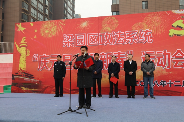 12月19日,商丘市梁园区政法系统“庆元旦 迎新春”冬季运动会在辖区十六中学隆重举行。区委书记、区长薛凤林,区委副书记崔振华,区委常委、政法委书记王宝剑,梁园区法院党组书记、院长王亚东,市公安局梁园战区党委书记贾洪亮,区政府党组成员、区委群工部部长张伟东等领导出席开幕式。