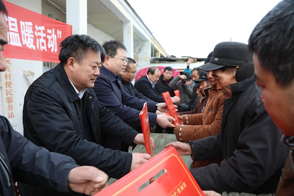 在新春佳节即将来临之际,1月15日,商丘市梁园区人民法院携手爱心企业河南锦然置业有限公司,在“三五”工作日到观堂镇阮庄村帮扶贫困,送上爱心慰问品,传递社会温情。梁园区法院党组书记、院长王亚东,观堂镇党委书记王国涛、镇长洪伟,河南锦然置业有限公司总经理曹海宁等出席了活动。