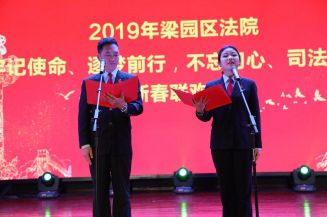 2018年,梁园区法院全院干警同舟共济,团结奋进,受理并审结了各类案件近2万件,圆满完成了各项工作任务。2019年,我们将继续创新机制,谋求发展,为人民群众安居乐业和社会和谐发展不遗余力做贡献!而后,王亚东院长向全院干警、干警家属及社会各界朋友致以诚挚的问候和节日的祝福。