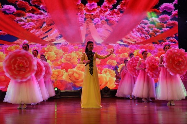 联欢会在《没有共产党就没有新中国》大合唱中拉开帷幕,党组成员和中层领导的表演贏得阵阵掌声。干警自排自演的舞蹈、小品、三句半、豫剧等节目精彩纷呈。歌伴舞《幸福来》把联欢会推向高潮,古筝独奏《渔舟唱晚》又让人沉寂入音乐殿堂,一曲《敖包相会》不仅传唱了美好的爱情,更让人们联想到公正和谐的重要,小品《感恩》讲述了一名年迈的老人带着年幼的孙女,为表达对法官的感激之情,不畏劳累前往法院赠送锦旗的感人情节,法警武术表演双节棍虎虎生风,开心游戏引来观众掌声不断。