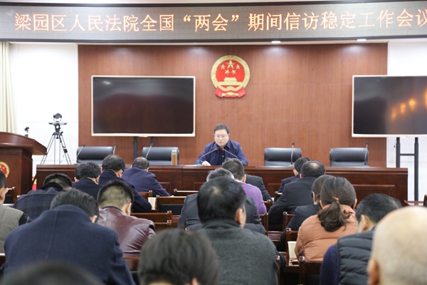 2月25日,在全国“两会”即将召开之际,商丘市梁园区人民法院专门召开信访稳定工作会议,进一步统一思想,分析形势任务,研究部署当前和今后一个时期法院工作,确保在全国两会期间不发生来自法院的干扰。 法院党组书记、院长王亚东做动员讲话,全院党组成员、部门负责人和员额法官共60余人参加了会议。