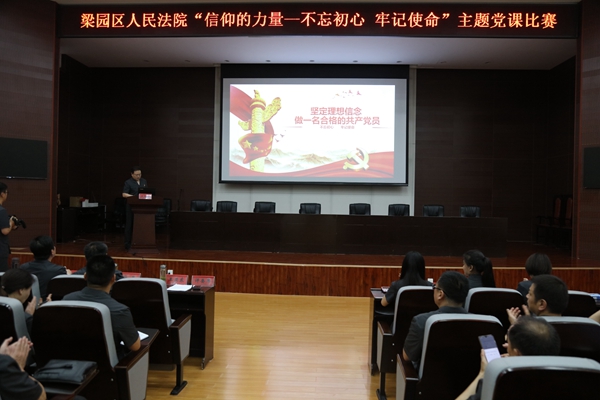 6月6日下午,河南省商丘市梁园区人民法院“信仰的力量--不忘初心,牢记使命”微党课比赛如期进行,党组书记、院长王亚东致辞,全院200余名干警参加了党课比赛活动。15个党支部的参赛选手走上讲台,为干警上了一堂精采的党课。