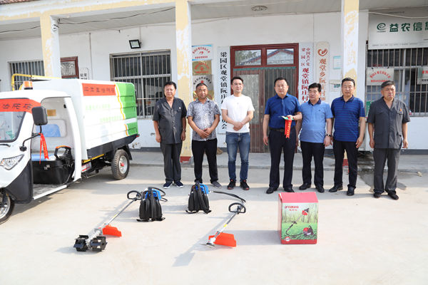 为落实“精准扶贫”政策,加快推进美丽乡村建设步伐, 7月15日,商丘市梁园区人民法院为精准扶贫点观堂镇阮庄村捐赠垃圾处理车一辆,打草机两台,帮助农村提高生活质量法院部分干警和观堂镇干部和村委会负责人参加了捐赠仪式。