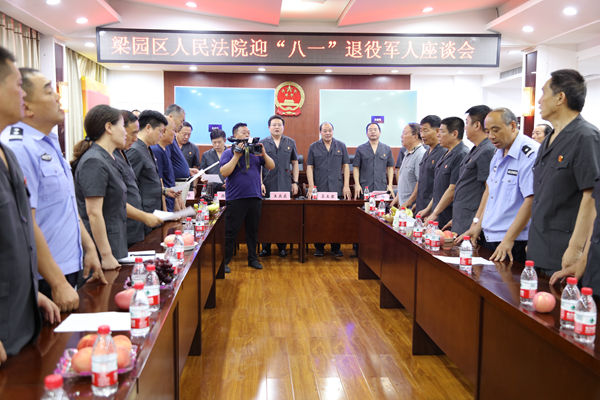 7月26日,为庆祝中国人民解放军建军92周年,商丘市梁园区人民法院召开退役军人干警座谈会。法院党组书记、院长王亚东,全体党组成员与60余名退伍转业在职干警及3名退休退役军人代表参加座谈会。