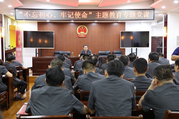 王亚东院长以中国共产党的发展历程及历史背景为主题,通过列举解读丰富详实的历史史料和改革成就,向大家阐述了共产党人为人民谋幸福、为祖国谋发展的的初心和使命。并要求每个党员干警要有坚定对中国特色社会主义的信念,坚定对习近平同志为核心的党中央的拥护,筑牢理想信念灵魂,锤炼优良政治品格,埋头苦干,锐意进取,不断提高履行新时代使命任务的能力和本领。