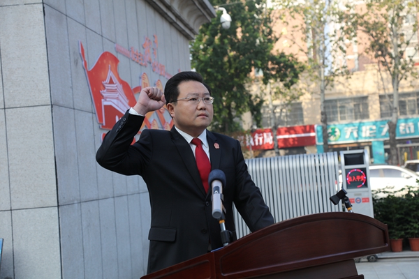 升旗仪式后,在梁园区法院党组书记、院长王亚东的带领下,全院干警面向宪法庄严宣誓,决心认真履行法官职责,忠于中华人民共和国宪法,为建设富强、民主、文明、和谐的社会主义国家努力奋斗!
