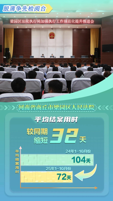 本期“脱薄争先检阅台”走进河南省商丘市梁园区人民法院。自脱薄攻坚开展以来,梁园区人民法院坚持“夯基·赋能·攻坚”三位一体工作导向,致力打造“政治引领、如我在诉”党建业务融合,构建“领导班子带头、骨干力量攻坚、全员动态赋能”的组织架构;完善“数据化研判、清单化整改、节点化督办”审判管理体系,构建“事务集约、卷宗统管、质效竞先”新格局,推动审判执行质效跨越式提升。该院以“既要脱薄、更要争先”的奋进姿态,在淬火重生中跑出“脱薄”加速度。