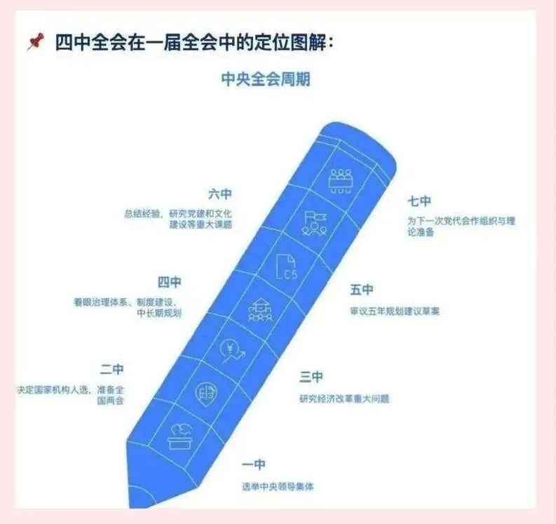 根据党章规定,每届中央委员会通常召开七次全体会议(即“一中全会”至“七中全会”),其中四中全会一般聚焦党和国家发展的重大议题,具有承前启后的战略意义。