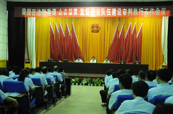 8月30日上午,商丘市梁园区法院邀请人大代表、政协委员监督评议队伍建设审判执行工作,区人大常委会张连河副主任、区政协陈培法副主席及20名区人大代表、政协委员参加了监督评议大会,法院党组书记、院长王宝剑主持会议,全体党组成员、部分干警代表结合法院正在开展的“我是梁园区法院人”大讨论活动,向人大代表、政协委员作了汇报发言,部分人大代表、政