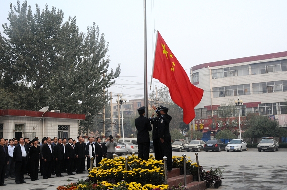10月8日上午8时,商丘市梁园区法院举行了隆重地升国旗仪式,全院200余名干警向徐徐升起的五星红旗行致礼。