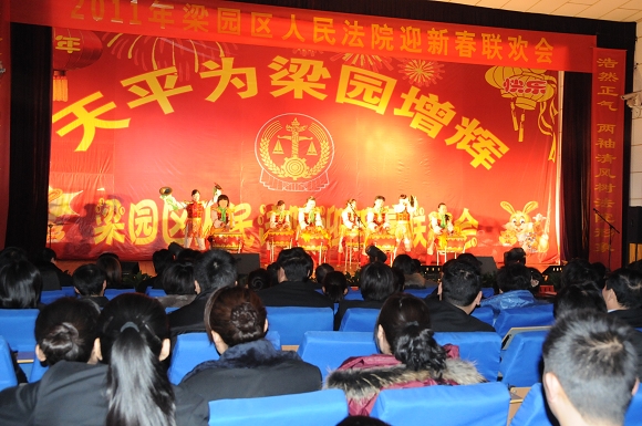 联欢会在《欢庆锣鼓》声中拉开帷幕。一曲《法官之歌》,展现了人民法官一心为民、无私奉献的执着精神,展现了人民法院干警的飒爽英姿;配乐诗朗诵《又献天平花》,反映了干警的心声,畅想了法院的美好明天;自编自演的三句半,让观众在快乐之中体会到法院工作的艰辛,表明了为人民执法的决心;精彩的武术表演,赢得了观众的阵阵掌声。通过观看文艺演出,让人大代表、政协委员更深地了解法院,欢快祥和的文艺形式,再一次展现了人民法院干警良好的团队精神,同时,法院的凝聚力和向心力也得到进一步提升。