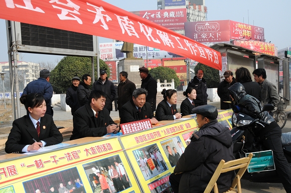 在社会矛盾排查化解工作中,梁园区法院紧紧围绕当前社会利益格局调整,矛盾纠纷频发,并且多以不同形式集中到法院的具体情况,充分发挥审判机关在社会矛盾化解工作中的重要职能作用,把推进三项重点工作做为当前法院的核心工作任务,采取多种形式,通过多个渠道,致力矛盾纠纷化解,营造和谐司法氛围。开展“大排查、大调处、大防范”活动,把矛盾纠纷化解在源头,开展“大回访、大评查、大巡回”活动,不断提高人民群众满意度。法官还走上街头,在市区人员密集地开展法律宣传服务活动。据统计,仅上午就接待咨询群众近百人次。法官不厌其烦,耐心解释,为群众解开了“心结”。