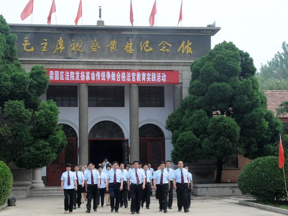 在建党90年之际,为把“发扬传统、坚定信念、执法为民”主题实践活动引向深入,商丘市梁园区法院组织干警来到毛主席视察黄楼纪念馆,庄严地举起右手宣誓:立足审判工作岗位,全心全意执法为民。