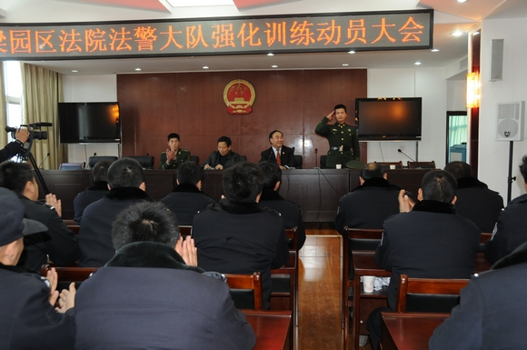会议由纪检组长任超英主持。动员大会之后,由武警教练班长担任指挥员,对法警素质进行了现场检验。