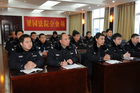 十二月二十二日下午,商丘市梁园区法院召开法警大队强化训练动员大会,驻商武警三中队副队长陈钊、班长刘飞虎做为特邀教练员,法院党组副书记、副院长孙卫东,党组成员、纪检组长任超英,法警大队全体干警参加了动员大会。