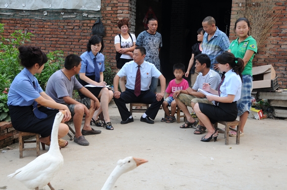 在学习实践政法干警核心价值观活动中,河南省商丘市梁园区法院干警注重将活动向社会延伸,请人民群众检验,把学习实践活动逐步引向深入。7月18日,该院少年刑事审判法官联合检察官到农村当事人刘某家中回访座谈,了解刑满释放青少年生活状况,指导当地村委会及当事人家长开展社区矫正。
