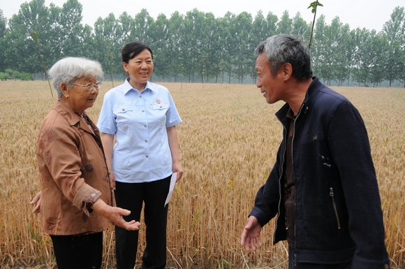 丁照启到地边看到老人在场,就与法官一起来到老人的面前,叫了一声:婶,你来啦。