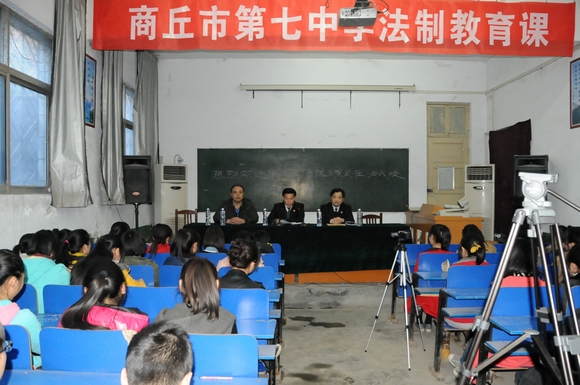 下午,第七中学多功能教室内,200余名学生静静的座在座位上,一条横幅点出了今天活动的主题,“商丘市第七中学法制教育课”几个大字让同学们感到新鲜,更出呼同学们意料的是,今天为他们辅导的是法院院长。