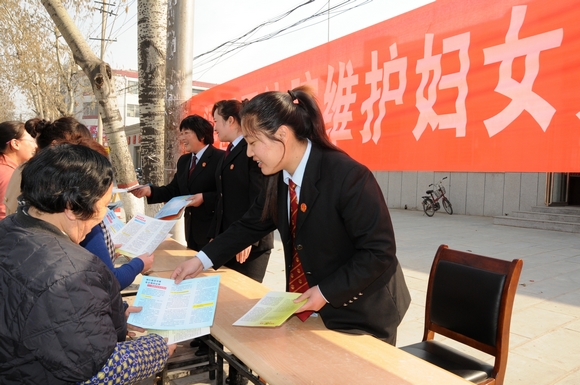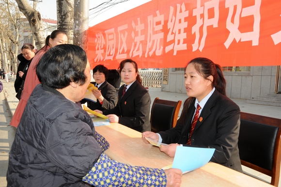 3月6日,该院专门在人口流动量较大的街道设立服务台,扯起“梁园区法院维护妇女儿童权益宣传”横幅,印制数千份宣传资料,由3名女法官接待前来咨询的妇女儿童。