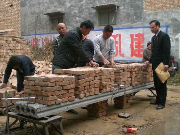 鉴定现场,在法院工作人员的监督下,技术人员抽取同一批次生产的楼板,现场设置检测设备,对楼板质量状况进行检测。通过现场实验得出鉴定结论,此批楼板确定存在质量问题,是诱发楼板断裂造成人员伤亡的主要原因。