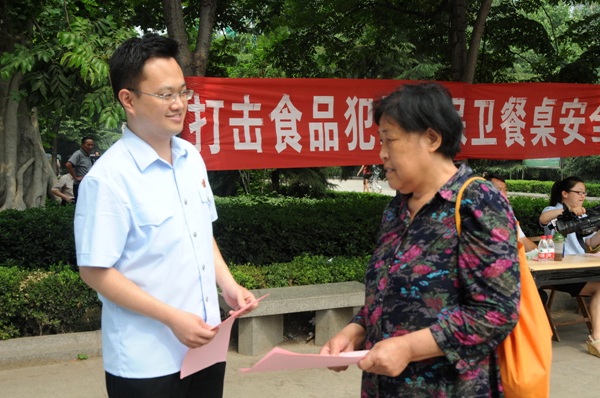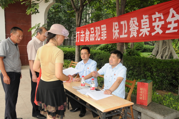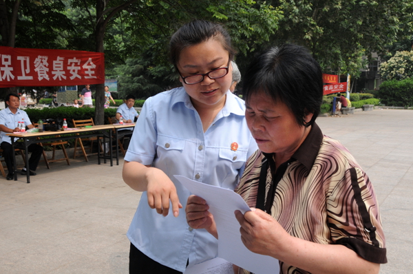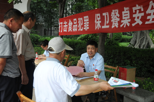河南省商丘市梁园区法院把打击涉及食品安全犯罪行为作为“保卫餐桌安全”的重要途径,制作宣传版面,印刷宣传单,组织干警走上街头,开展专项宣传活动活动。仅6月19日,就接待来访群众230余人,解答群众疑问90余条,散发宣传单位300余份,活动受到广大群众的好评。