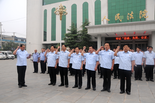 9月22日,在中秋节后第一个工作日,河南省商丘市梁园区法院组织了庄严的升国旗仪式,之后,全体党组成员举起右手,面对鲜艳的五星红旗庄严宣誓:作为梁园区法院党组成员,如果所分管的部门在案件质量上出现问题,自己愿意承担主要责任,辞去党组成员职务,并接受党政纪的处理。领导干部的庄严承诺,为全体法官起到了良好的示范表率作用,体现了法院抓案件质量,促公正司法的坚强决心。