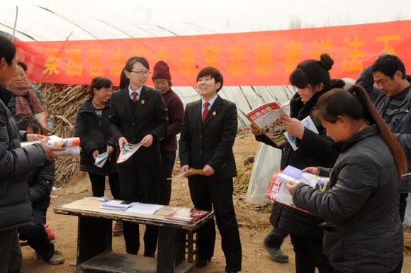 在全国“两会”召开之际,3月4日,河南省商丘市梁园区法院女法官来到双八镇“草莓基地”,为农户讲解法律知识,引导草莓种植户依法维护自身合法权益,受到农户的欢迎。