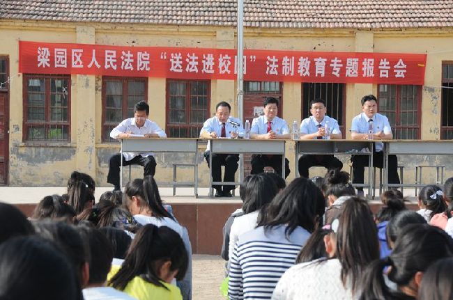 梁园区法院把关心青少年学生成长进步,做为贯彻党的群众路线教育实践活动的一项重要内容,定期为辖区中小学开展“送法进校园”活动。组织法官精心备课,选择对学生有教育意义的典型案例,结合在审理未成年人犯罪案件中积累的丰富经验,进行了深入浅出的讲解。同时,还选择最近审理的现实案例,专门制作成教育光盘赠送给学校,运用学校多媒体设备,组织全校师生学习观看,活动受到学校师生及家长的欢迎。