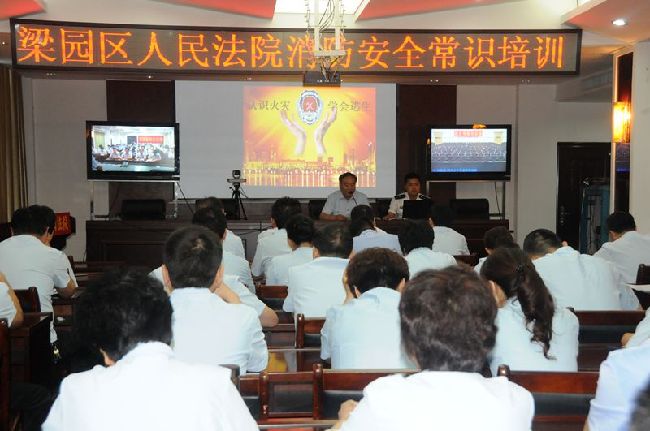 6月17日,河南省商丘市梁园区法院组织全院干警进行了一次消防安全常识培训,邀请河南省消防安全专家王飞,运用多媒体教学手段,为干警进行了全面的消防安全专题辅导,干警普遍反映,通过专题辅导对火灾的认识明显提高。