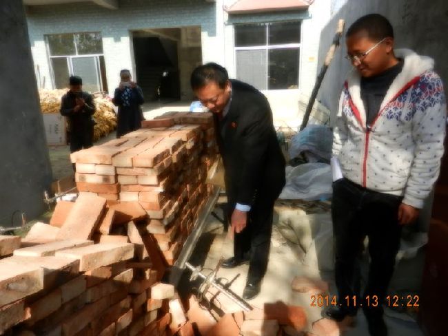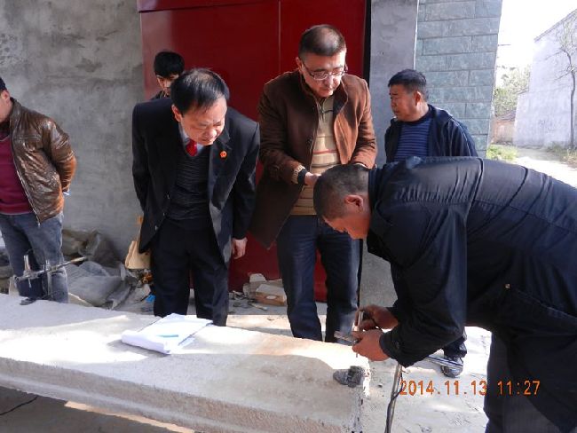 11月13日,河南省商丘市梁园区法院干警和司法鉴定人员来到观堂乡某村,现场对涉案楼板进行承压测试,公开透明让案件双方当事人满意。