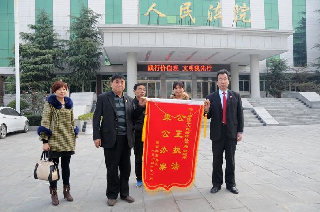 11月17日,在河南省商丘市梁园区法院,一起历时10年的执行案件,当申请人接到执行款7万元后,心情万分激动,执意要为执行法官送锦旗,鞭炮声中,申请人手执锦旗来到法院,向法官表达感激之情。