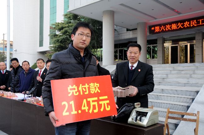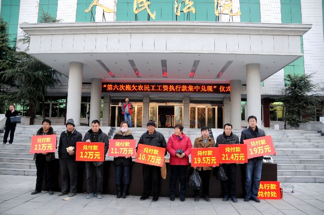 今年以来,梁园区法院根据省市法院安排部署,为切实保障农民工合法权益,促进社会和谐稳定,抽调精兵强将,多措并举,对拖欠农民工工资等类案件进行深入集中清理,开辟农民工维权“绿色通道”,对农民工工资等类案件优先立案、优先执行,穷尽各种手段加大执行力度,采取曝光“老赖”、罚款、拘留等措施,坚决依法维护农民工合法权益。