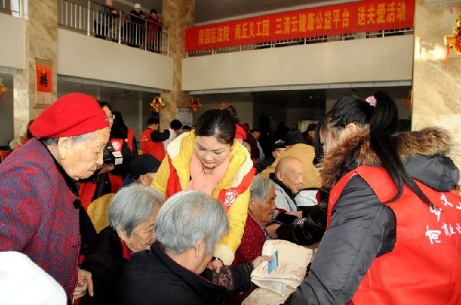 2月8日,河南省商丘市梁园区法院联合商丘市义工团、三清云健康公益平台、万家康养生馆、文博盲人按摩店,来到商丘市星光老年之年,为老人送温暖、送健康,受到老人的热烈欢迎。