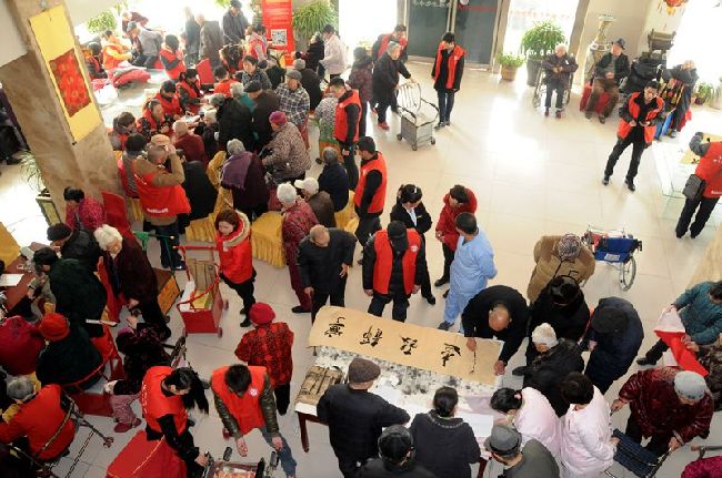 进入腊月二十,春节的脚步越来越近了,人们开始走上街头,办起了年货。梁园区法院干警此刻没有忘记年愈古稀的老人,他们联合商丘义工团、三清云健康公益平台、万家康养生堂等40余名义工,走进了商丘市星光老年之家,为老人量血压、测血糖,建立健康档案;为老人把脉问诊,讲解保健常识;为老人修脚按摩,送上关爱;为老人义写春联,送上节日的祝福;活动现场异常火爆,三清云健康公益平台现场为老年之年家赠送仪器,并为每位老人赠送毛巾300余条;万家康养生馆中医为100余名老人提供健康指导;梁园区法院为100余名老人测量血糖,义写春联和书法作品90余幅;文博盲人按摩店义务为老人修脚按摩10余人次,期间,邻县虞城义工团的负责人也来到现场,为老人服务,与商丘义工交流工作经验。活动一直持续到老年之家中午开饭,当老人们依依不舍离开服务点时,仍期望社会上多组织这样的关爱活动。
