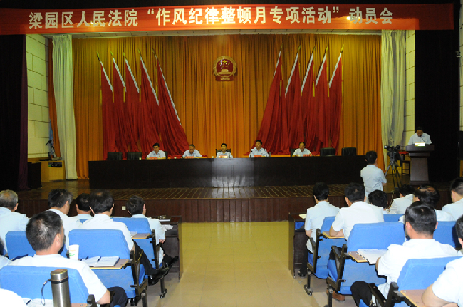5月21日上午,商丘市梁园区法院召开“作风纪律整顿月专项活动”动员会,市中院专项活动第三督导组组长任秉山参加会议并提出具体要求,中院党但成员、梁园区法院党组书记、院长王宝剑做动员讲话,全院200余名干警参加动员会。